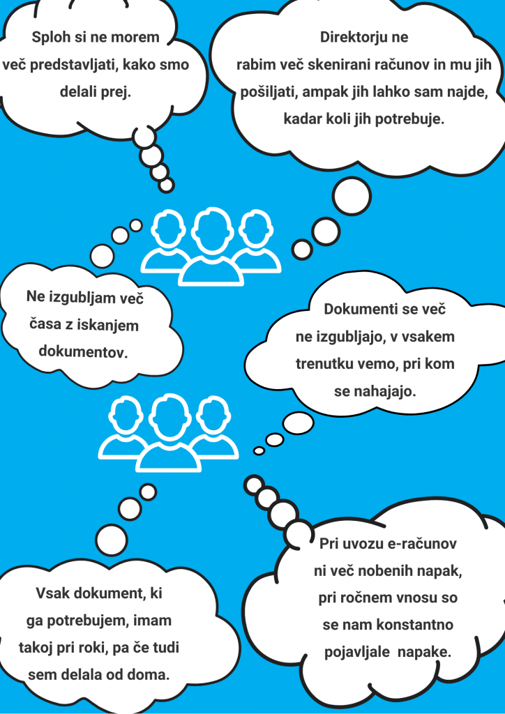 Zmanjšali smo časovne izgube in čakalne vrste, veliki, okorni tiskalniki in skenerji nam niso bili več pri roki. Pričeli smo koristiti vse možnosti digitalne tehnologije … na enkrat smo postali fleksibilnejši.